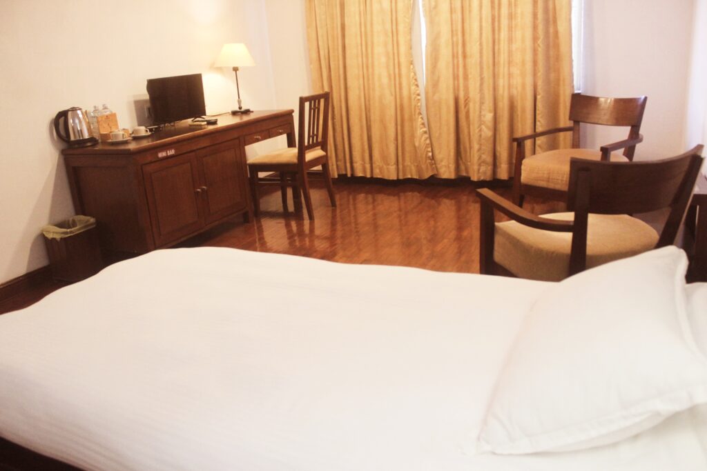 A suite room offers a luxurious and spacious experience, featuring separate living and sleeping areas. Ideal for those seeking extra comfort, it includes premium amenities such as a large bed, seating area, TV, work desk, and often additional perks like a dining space.